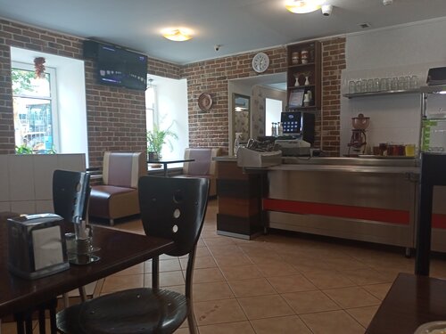 Очень вкусная курица по-французски и приветливый, вежливый персонал! Удобные диваны. Единственное, лучше включать музыкальные каналы в общем зале, а не новости